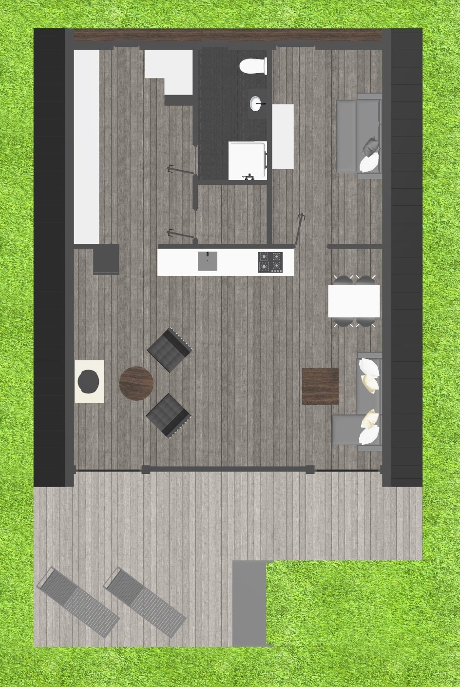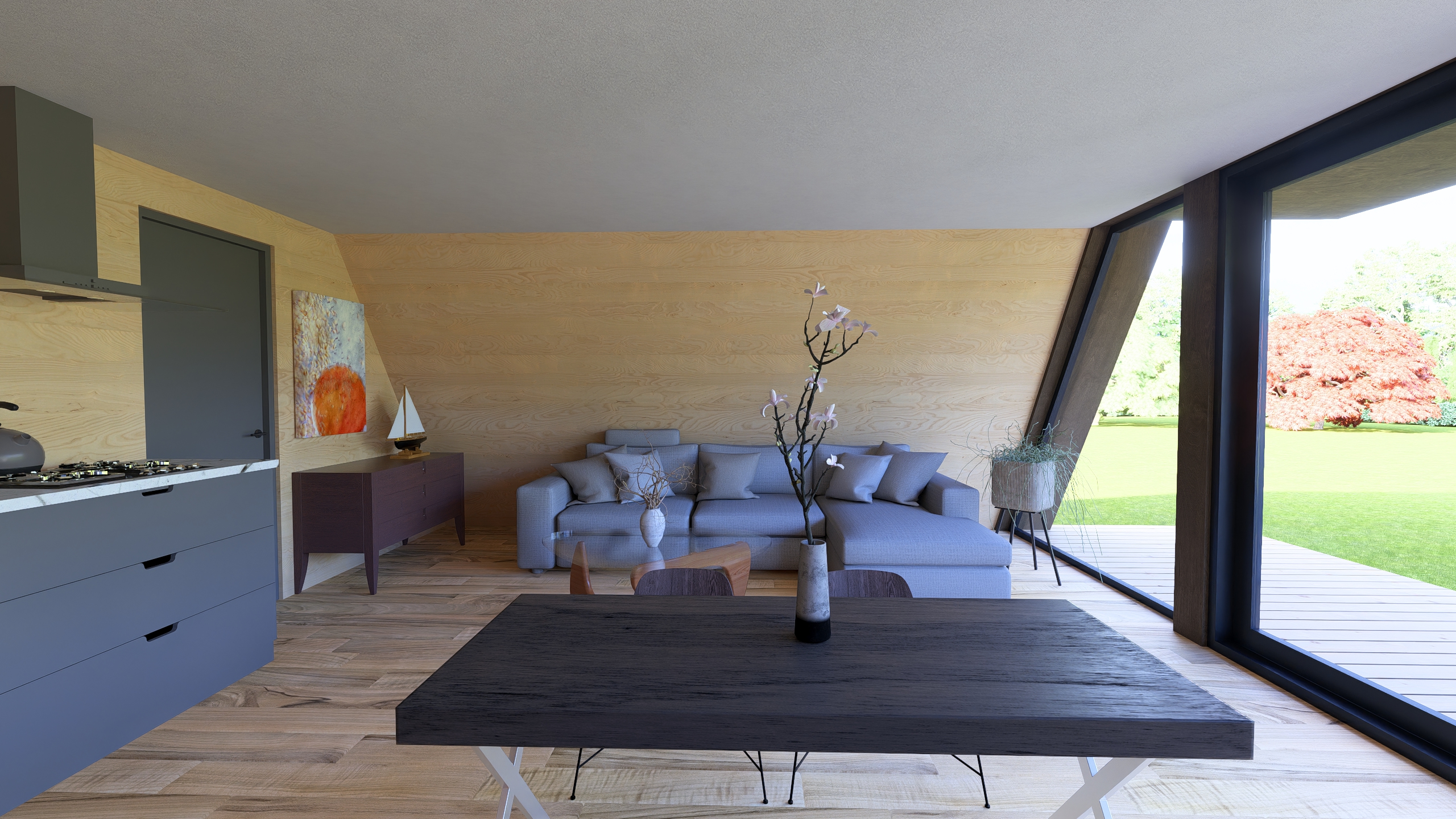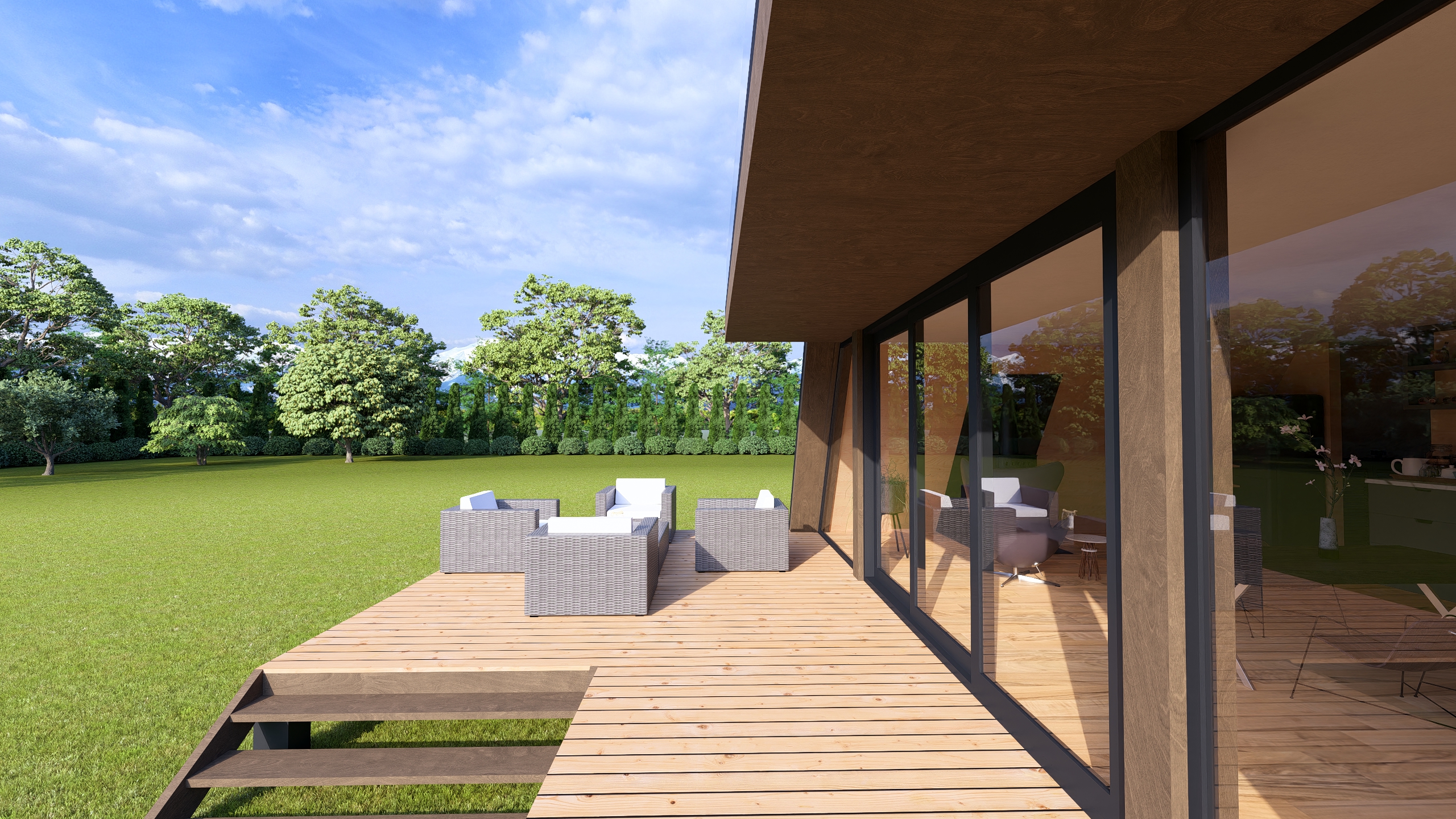 Je to ideálne riešenie pre tých, ktorí chcú komfortný priestor na oddych, víkendové úniky z mesta alebo dokonca na celoročné bývanie v spojení s prírodou. Tento dom je dôkazom, že moderné bývanie môže byť funkčné, pohodlné a zároveň harmonické s okolím.